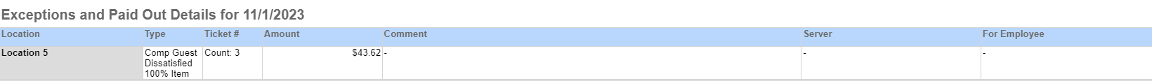 Exceptions and Paid Out Details columns