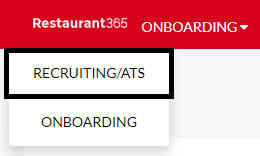 Navigate to the Recruiting module by clicking the Restaurant365 logo and selecting 'Recruiting/ATS'.