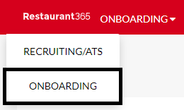 Navigate to the Onboarding module by clicking the Restaurant365 logo and selecting 'Onboarding'.