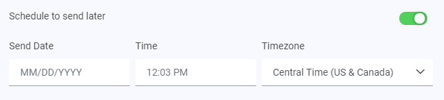 7) Schedule to send later - When toggled on, the User can set up the Date, Time, and Time Zone that this email will be sent to the Applicant