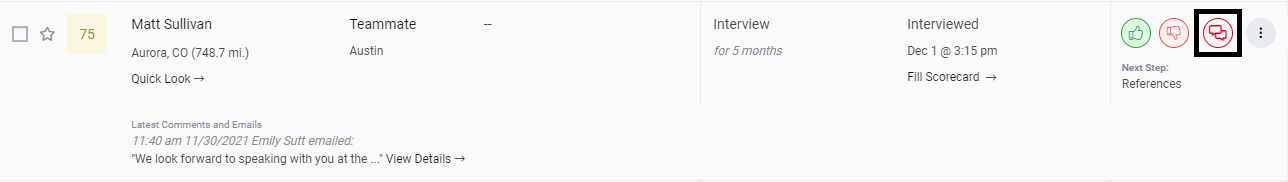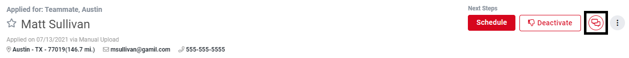 An Applicant can also be contacted by clicking the same icon within the Applicant's Profile.