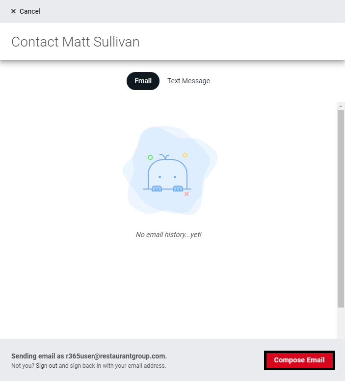 5) Send a copy to me - This will send a copy of the email to the User's email, which is listed at the bottom of the Contact Modal next to the Action Buttons (#9)