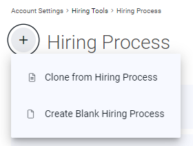 located next to 'Hiring Process' above the listing. This will open a drop-down menu in which the User can select whether to copy a current process or create a new process.