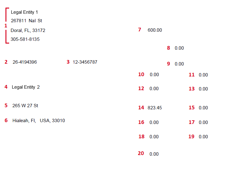 1) Payer's Name and Address - The Legal Entity's name and address