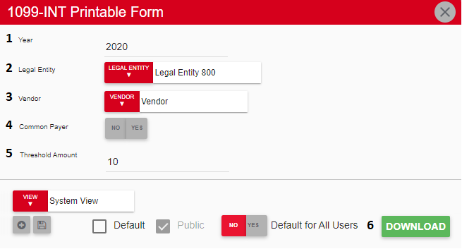 Find the '1099-INT Printable Form' and select 'Customize' next to the report. This will open up a listing of all Report Parameters that can be set to pinpoint the exact download a User needs.