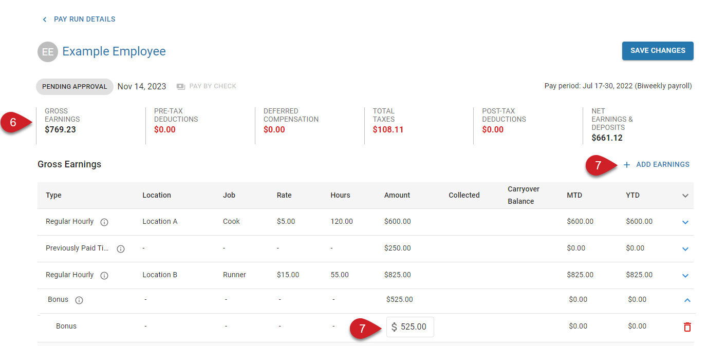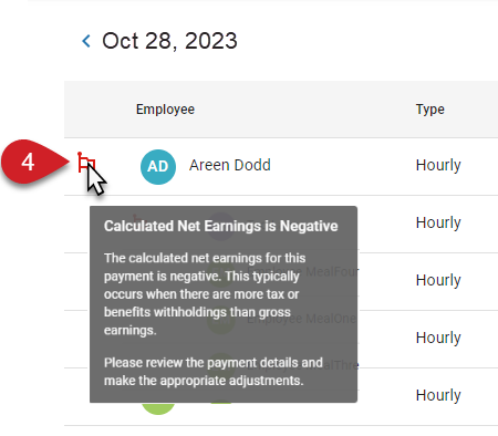 ![]() | For a deeper review, click a desired employee to open the associated Payment Details page. To skip the employee-level review, move to step 9. | ![]() |
