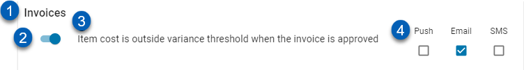 ![]() | Module Category | Each Module Category contains one or more Notification Categories (#4). Click to expand, or click to collapse if already expanded. |