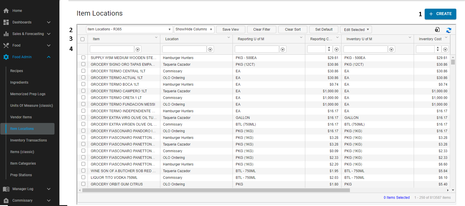 1) +Create - Click to Create a new Item Location Record