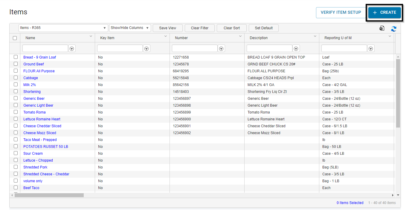 Items are part of the Inventory section of the Operations module of Restaurant365. There are two ways to add a new Purchased Item in R365: create a new Purchased Item or import new Purchased Item information using the Import Tool.