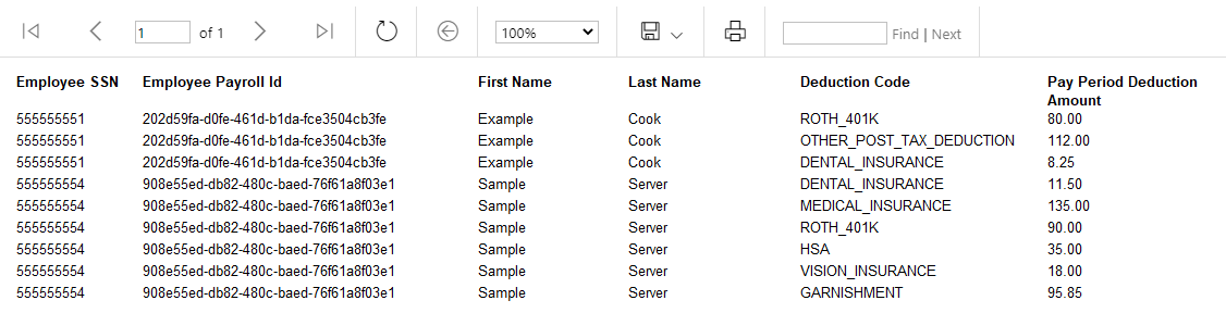 The Deduction Audit Report displays current pre-tax and post-tax deduction configurations for active and onboarding Employees who have been added to Payroll within Workforce. Terminated Employees are not included in this report.