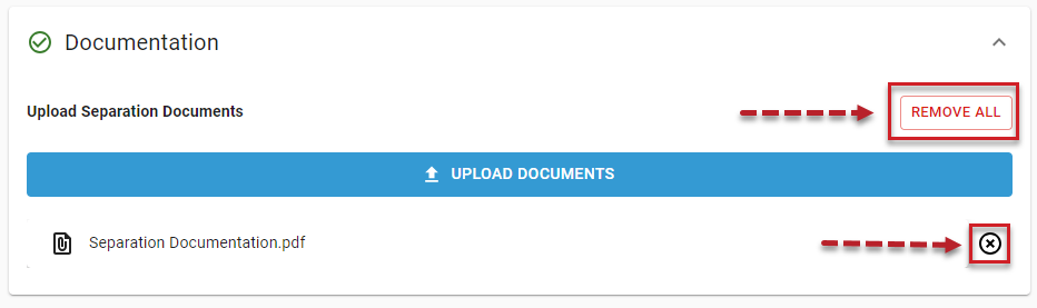 | Note: Uploaded documents can be removed by clicking 'Remove All' or the 'X' icon for the document. | ![]() | |