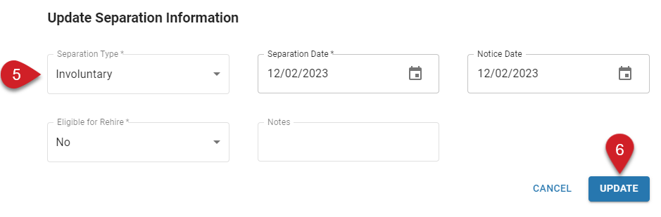 | Upload separation documentation. Once the employee separation is complete, the uploaded document(s) will appear on the 'Documents' tab of the employee's Employee Record in the 'Separation' folder. | ![]() |